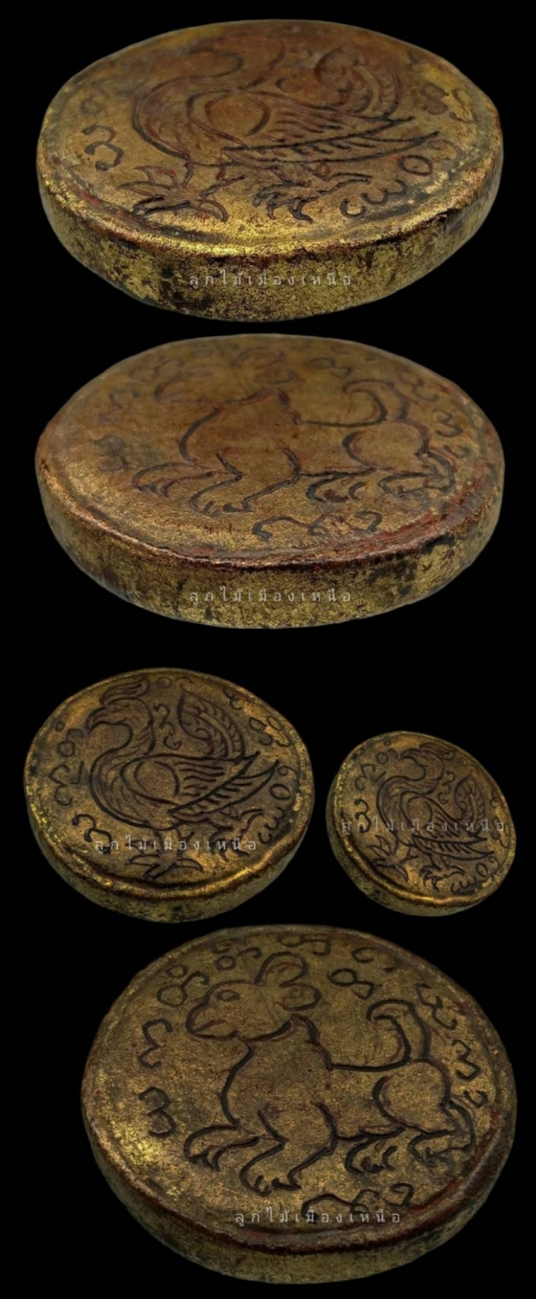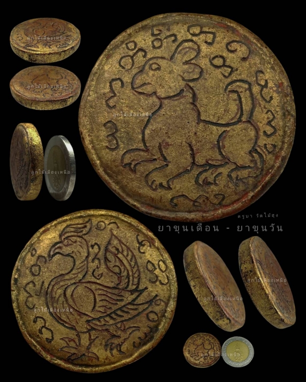 ยาขุนเดือน - ยาขุนวัน ครูบา วัดไม้ฮุง Original ชิ้นนี้ มี ขนาด เขื่องกว่า เหรียญ 10 มาหน่อย นึง ครับ.. ชิ้นนี้ เป็น แบบ แกะลายเดินเส้น.. ลงรัก ทอง สวยงาม สมบูรณ์ ครับ.. อายุ ร่วม 100 กว่า ปี.. เจ้าของเดิม เก็บ รักษา มาเป็น อย่างดี จนถึง ปัจจุบันนี้ .. ยาขุนเดือนขุนวัน ยามหาเศรษฐี ครูบาวิชัยยะ สิริวิชชฺโย (ครูบาไม้ฮุง) จ.แม่ฮ่องสอน Master piece Original .. Small size ยา ขุนเดือน - ขุนวัน ครูาวิชัยยะ มี พบเห็น มี ด้วยกัน 2 แบบ .. - แบบ แกะลาย เดินเส้น - แบบ แกะลาย นูนสูง ( แบบแห้ง & แบบเปียก ) ยานี้เปรียบ "จันทราเทพ"ผู้ดูแล ยามค่ำคืน และ "พระสุริยะเทพ"ผู้ดูแล ยามกลางวัน มีทั้ง กลางวัน - กลางคืน ยาขุนเดือน - ขุนวัน มี 2 ด้าน ด้านหนึ่งเป็นรูปกระต่าย หมายถึงพระจันทร์ อีกด้านเป็นรูปนกยุง หมายถึงพระอาทิตย์ มีทั้ง อำนาจ และ เมตตา ในชิ้นเดียวกัน... ใครที่มีบูชา ติดหอ ติดเรือน ติดกาย จักเป็นมงคลยิ่ง ดีนักแล.. ครูบาวัดไม้ฮุง เป็นผู้มีศรัทธา ล้มหลามในเรื่อง ตัวยาสัก ผงยาเป็นที่ ศรัทธา ทั้ง เมียนมาร์ และ จ.แม่ฮ่องสอน ... ข้อมูล สาระดี คำบอกเล่า ผู้เฒ่า - ผู้แก่ พื้นที่ จ.แม่ฮ่องสอน.. หยิบ มา เขียน เป็น ธรรมทาน เพื่อร่วมสืบสาน พุทธศิลป์ เครื่องรางล้านนา ให้คง สืบต่อไป.. ขอบคุณ ทุกท่าน ที่ให้ ความสนใจ และ เชื่อมั่น ในร้าน เรา ครับ... การันตีชิ้นงานคุณภาพ ตู่ สาละวิน |